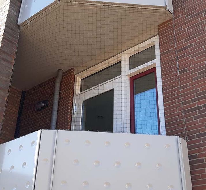 Bij dit project is gekozen voor vogelnetten als een effectieve en duurzame oplossing om de balkons te beschermen tegen vogels.